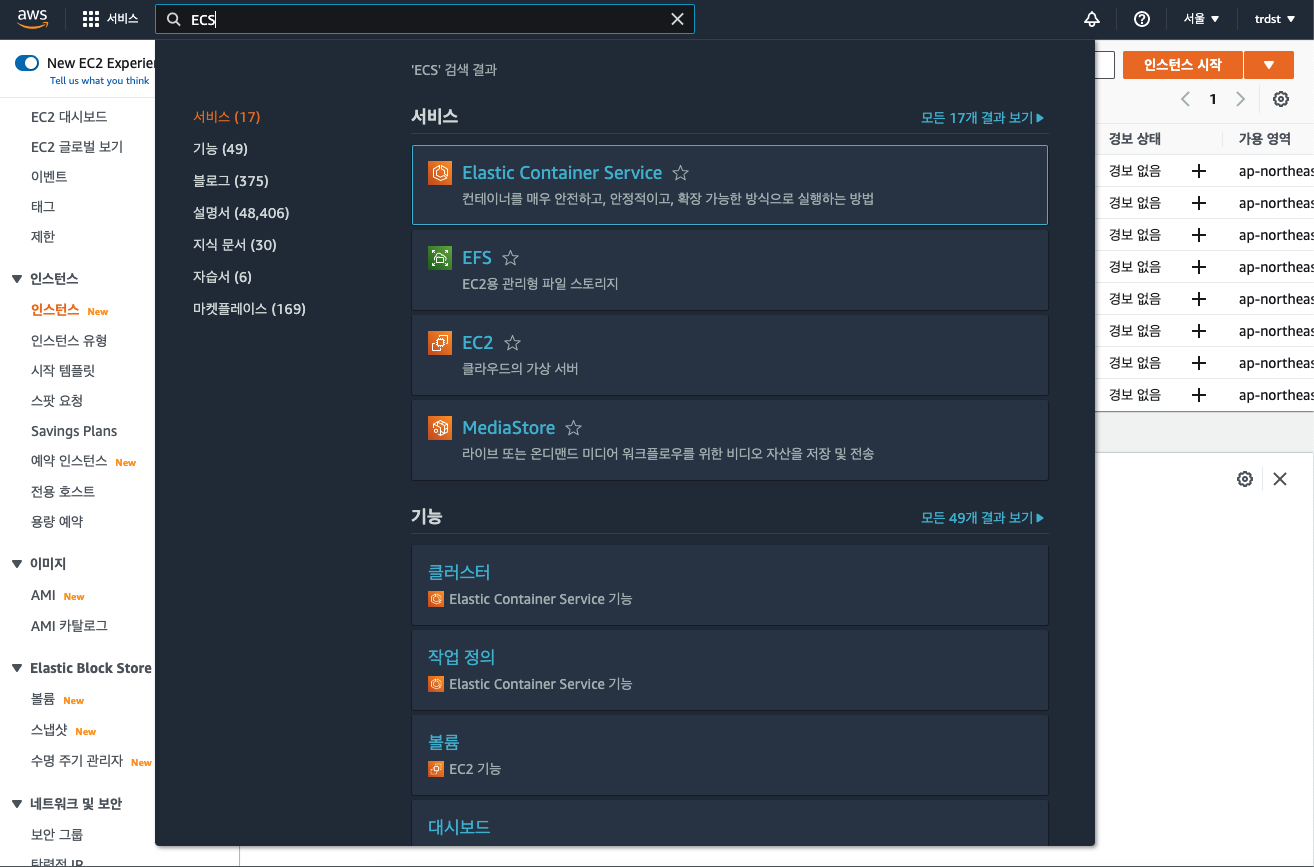 1. 일단 AWS에서 ECS로 검색을 한다.